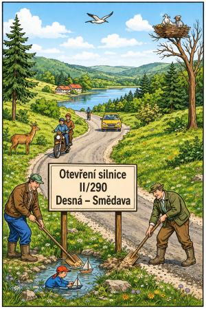 Ve středu 15. dubna 2026 o půlnoci (00:00 hodin) byla pro veškerou dopravu otevřena silnice II/290 v úseku Desná – Smědava.