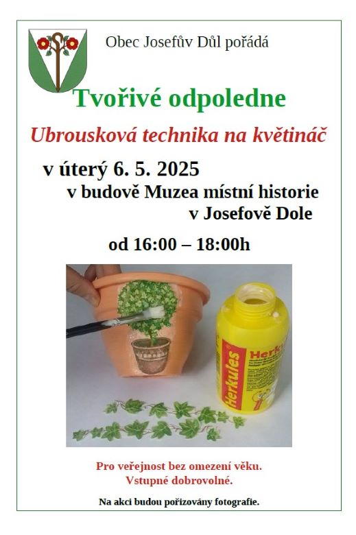 Přijďte si ozdobit květináč ubrouskovou metodou. Pro veřejnost bez omezení věku.